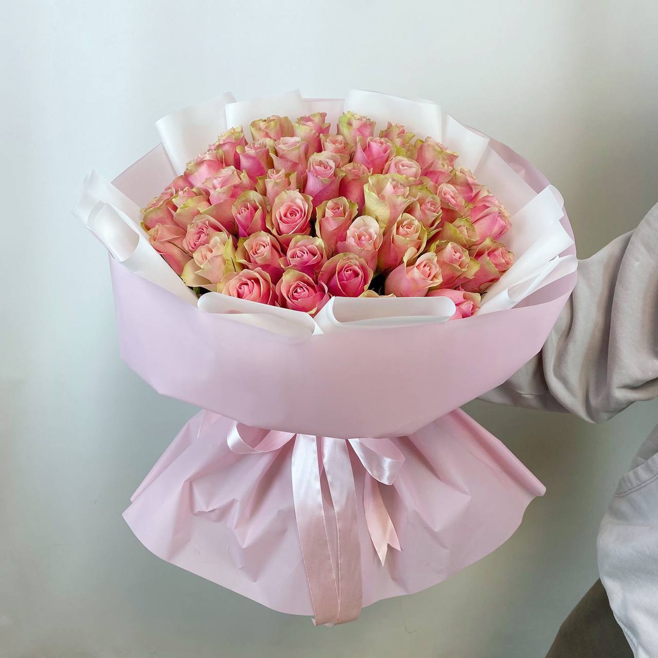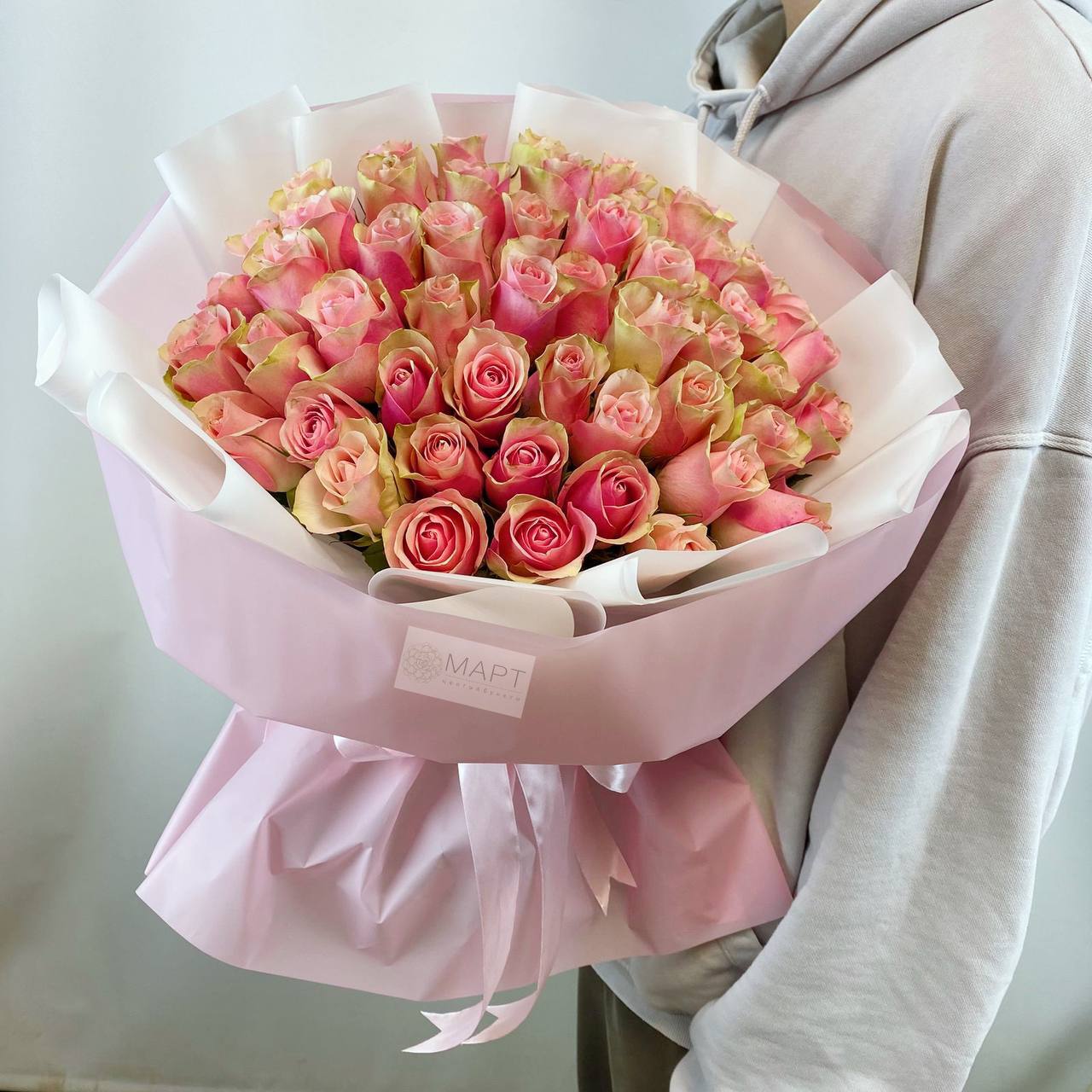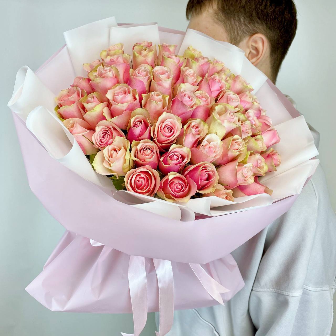 Букет из 51 кенийской розы (высота 40 см) в стильной упаковке